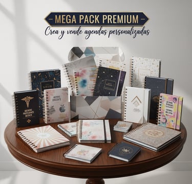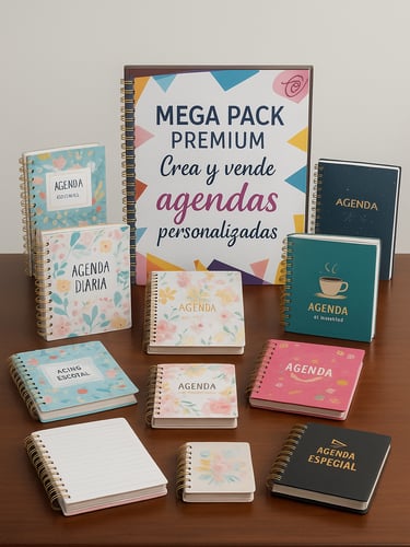 Recibirás un kit con archivos digitales con más de 100,000 archivos para encadernación, archivos completos que incluyen miolos, portados, calendarios, agendas planners mockups y mucho más, ¡todo listo para imprimir y montar!