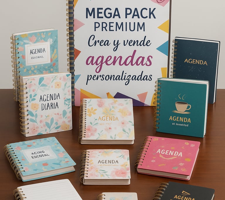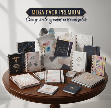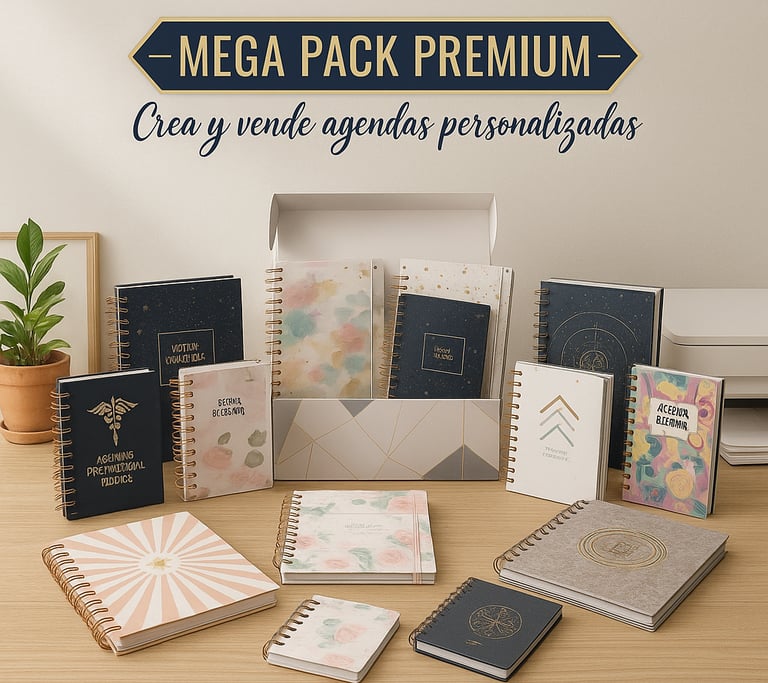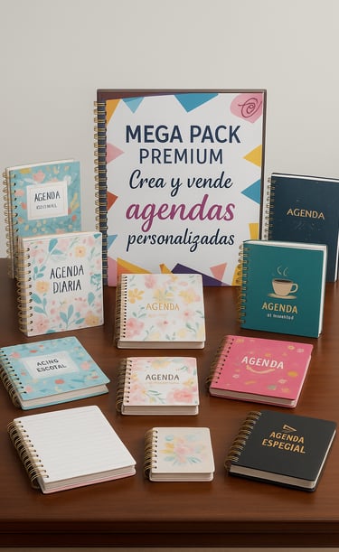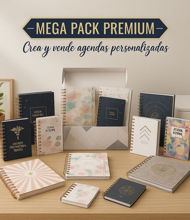 Accede a un paquete completo con más de 100mil archivos listos y actualizados, entre interiores, portadas, mockups, agendas, planners, libretas de salud ¡y mucho más! Todo preparado para solo imprimir y recortar.